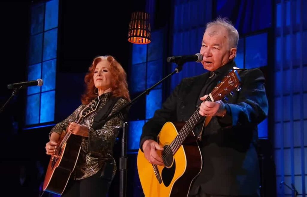 The song’s most moving chapter arrived in 1985, when Bonnie Raitt and John Prine performed “Angel From Montgomery” together at a concert held in tribute to Steve Goodman, their close friend and fellow songwriter, who had died the year before. Goodman was instrumental in Prine’s early career and deeply woven into the same folk tradition that valued truth over polish. On that stage, the duet carried more than melody—it carried absence. Prine and Raitt sang not only as collaborators, but as survivors honoring someone who had once stood between them, laughing, writing, believing in songs.