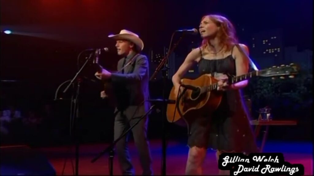 The performance featured in the recording shows the signature musical partnership of Gillian Welch and David Rawlings, artists widely respected for preserving the spirit of old American folk and country traditions. Standing close together, their harmonies rise and fall with a natural ease that feels almost conversational. Rawlings’ gentle guitar lines weave around Welch’s clear, steady voice, allowing the words of “I’ll Fly Away” to settle softly into the room.