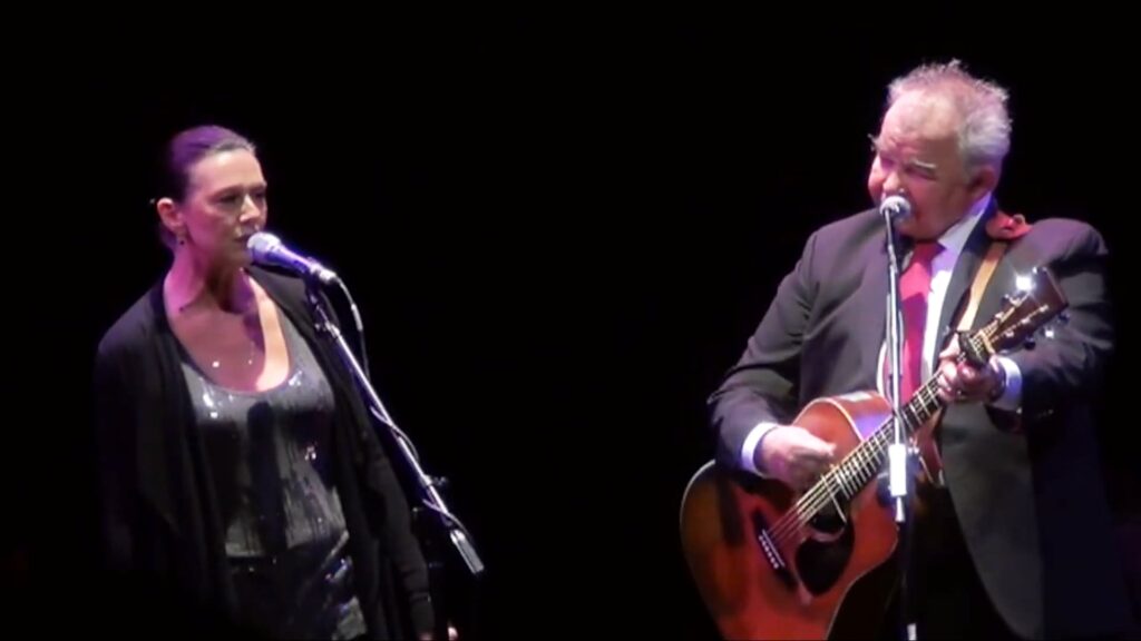 By then, Prine was already a revered figure in American songwriting, his voice weathered yet unmistakably warm. But what made this moment linger was not his legacy. It was the presence of Fiona, standing close, not as a guest or background figure, but as part of the story itself. Their duet unfolded without flourish. No grand arrangement, no dramatic build. Just two voices, steady and sincere, meeting in the middle.