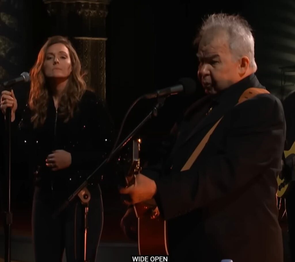 The arrangement is understated—gentle acoustic guitar, subtle rhythm, warm harmonies. In the Americana Honors performance, Carlile’s harmony floats above Prine’s lead like a protective halo, while Simpson grounds the performance with earthy restraint. There is no grand crescendo. The power lies in stillness.