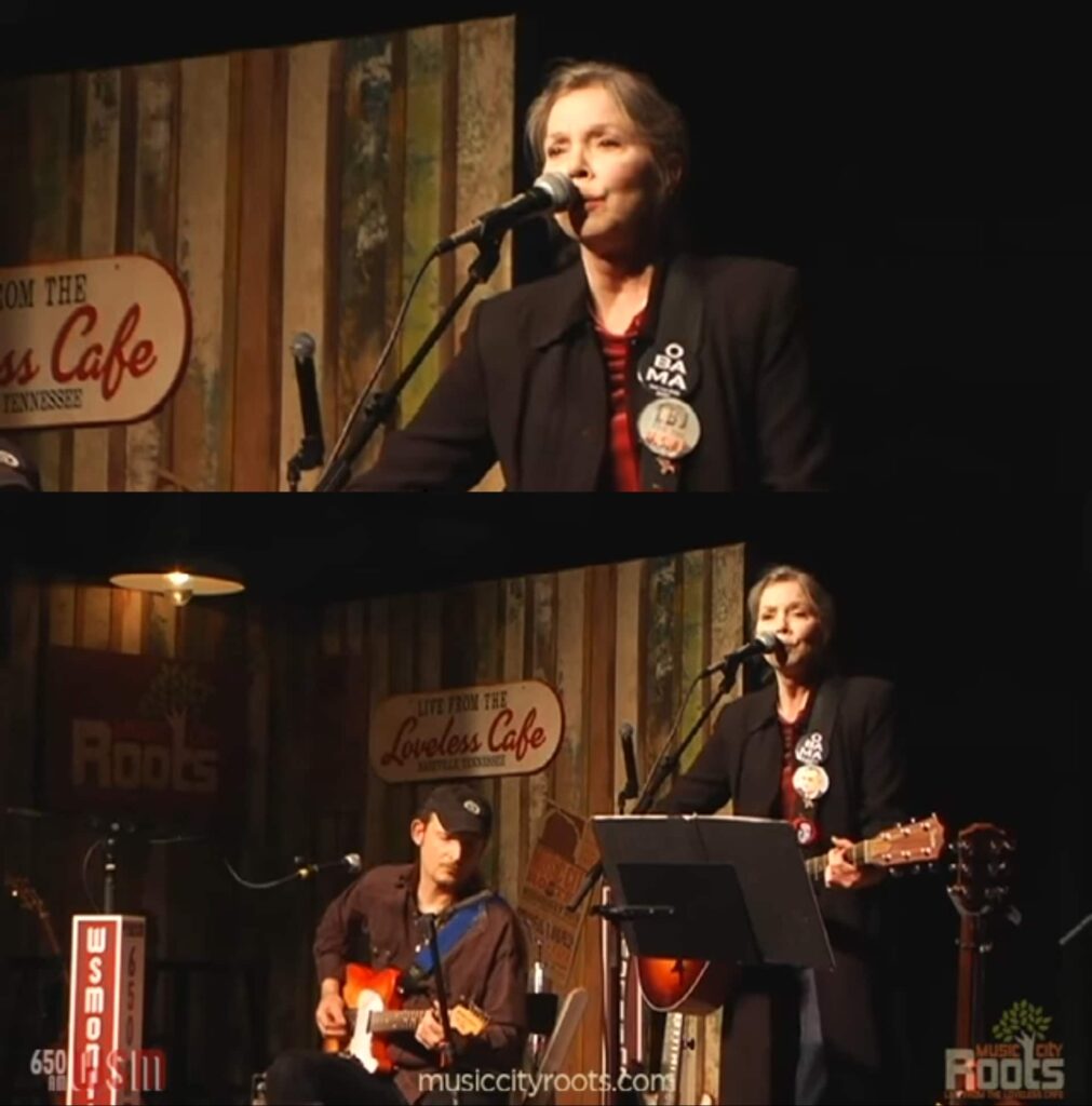 On November 11, 2009, at Music City Roots live from the Loveless Cafe, Nanci Griffith delivered a heartfelt performance of Listen to the Radio, reminding listeners why her voice had long been a companion to those who find meaning in quiet stories and simple truths. In a setting known for its intimacy, Griffith’s presence felt both familiar and deeply personal.