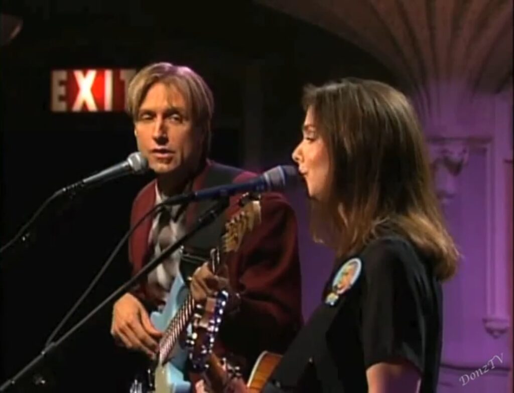 From the first notes, the studio atmosphere shifted. There was no spectacle, no grand arrangement. Just the fragile clarity of Griffith’s voice and the restrained, almost conversational bass lines from Will Lee. Together, they created a sparse musical space where every lyric could breathe. The story of Caroline, a woman worn down by circumstance and loneliness, unfolded with an intimacy that television rarely captures.