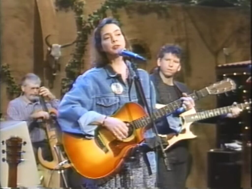 In a deeply personal performance during the 1990s, Nanci Griffith revisited one of her most introspective compositions, “You Can’t Go Home Again,” originally featured on her 1987 album “Lone Star State of Mind.” Backed by The Blue Moon Orchestra, a group of finely attuned musicians including James Hooker on keyboards, Pete Kennedy on lead guitar, and Peter Gorish on cello and bass, Griffith delivered the song with a tenderness that felt almost conversational, yet emotionally precise.