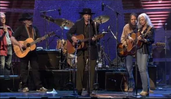 By the time Farm Aid 2005 took place in Chicago, the song had aged into something else. Sharing the stage with Willie Nelson, whose career embodies resilience and independence, and Emmylou Harris, whose voice carries an almost archival sense of American musical memory, the performance felt less like a concert moment and more like a gathering of survivors. None of them needed to explain the song. Their presence alone contextualized it. These were artists who had lived long enough to understand what it means to stay when trends pass and applause fades.