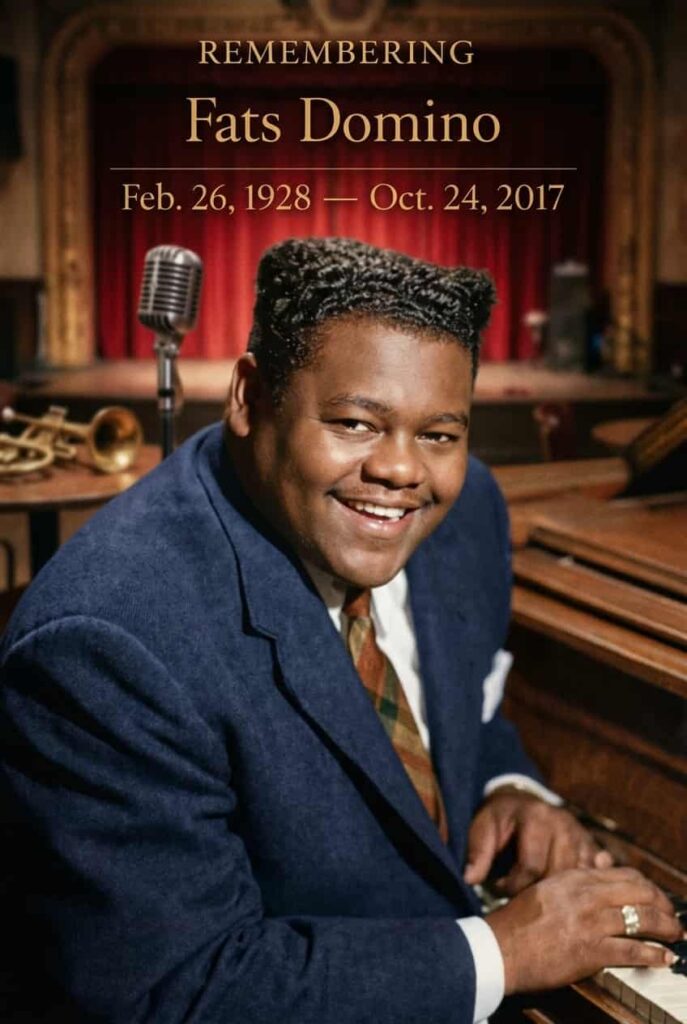 On his birthday, memories rise easily. A black and white television flickering in the corner. A record needle gently lowered onto vinyl. A dance floor polished by countless footsteps. The world has grown louder and faster since those early days of rock and roll, but the warmth in Fats Domino’s voice still feels close enough to touch.