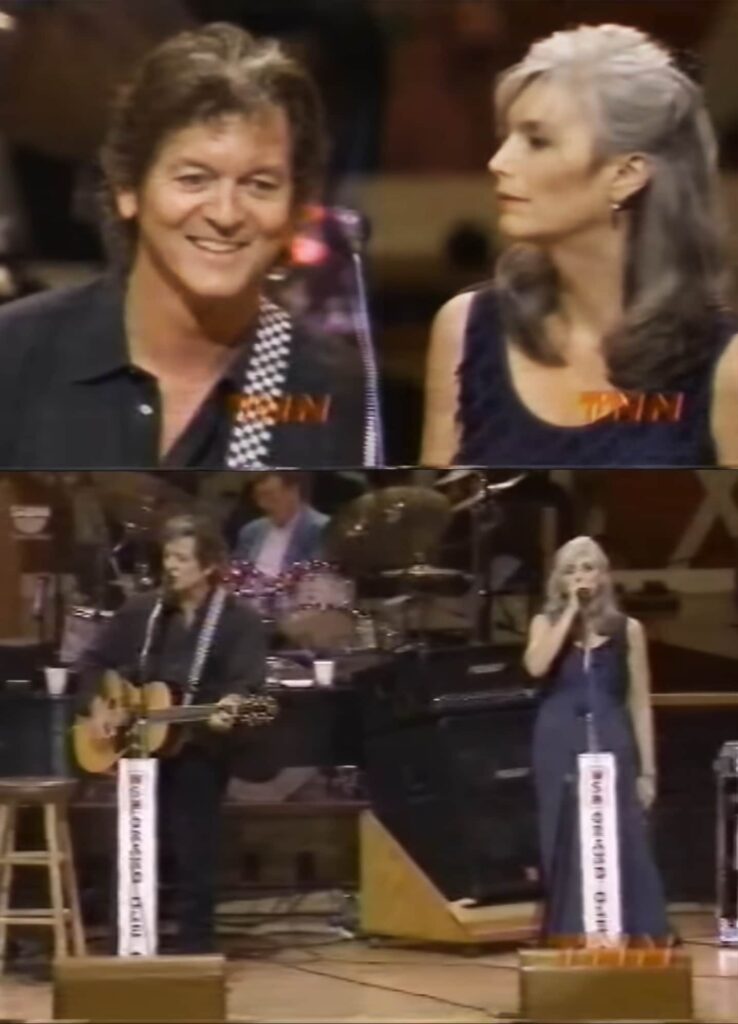 From the very first lines, there is a softness in the delivery that draws you in. Emmylou Harris, with her unmistakable crystalline tone, does not overpower the song. Instead, she lets it breathe. Her phrasing feels almost weightless, like someone revisiting a memory they have long since accepted but never quite forgotten. Beside her, Rodney Crowell offers a grounded, steady presence. His voice carries a quiet weariness, the kind that comes not from defeat, but from knowing how these stories end.
