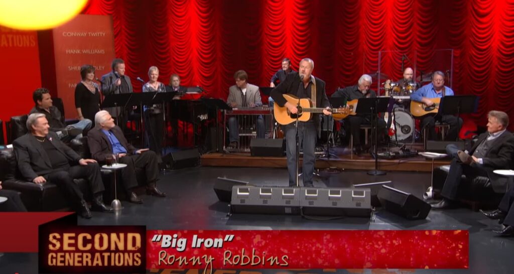 More than half a century later, Ronny Robbins brought that world back to life on Country’s Family Reunion: Second Generations, a program devoted to preserving classic country’s enduring spirit through the children of its icons. His performance of “Big Iron” wasn’t a flashy reinterpretation. It was tender, respectful, and quietly powerful—an homage from a son who understood every nuance of the song’s meaning. When he sang, you could hear not only the familiar phrasing of his father but also something personal, something that came from living in the shadow—and the light—of greatness.