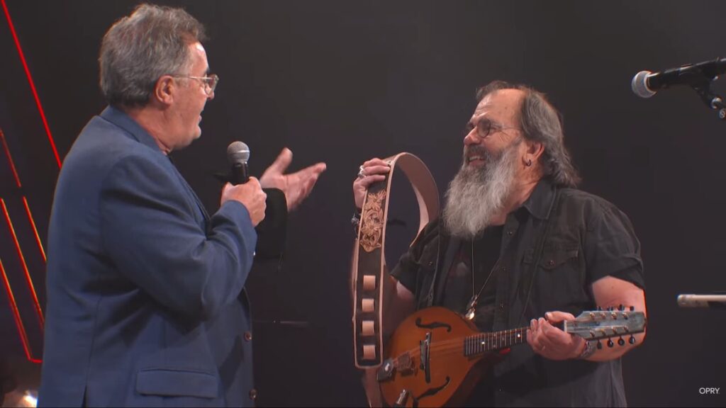 There are moments in country music that do not need grand staging or dramatic buildup. They arrive simply, almost gently, and yet carry the weight of history. One such moment came when Vince Gill surprised Steve Earle with an invitation to join the Grand Ole Opry, presenting him with a custom guitar strap marking the Opry’s 100th anniversary. It was not just a gesture. It was a recognition, long in the making.
